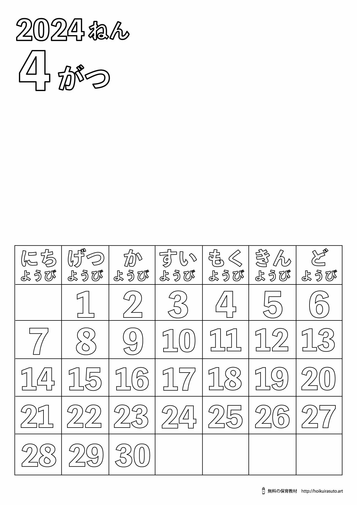 2024年3月25日 / 最終更新日時 : 2025年1月25日 kureyonchan カレンダー塗り絵 塗り絵カレンダー2025年4月無料 | 4柄 | 高齢者保育園デイサービス | 無料ダウンロード このページにはPRが含まれています 幼稚園や保育園・高齢者介護施設など、自由にダウンロードをしてご使用ください^u^イラストの下にそれぞれダウンロードボタンがあるので、すぐにダウンロードしてご使用していただけます。今回の2025年3月の塗り絵カレンダーは、ひなまつり・つくし・チューリップ・無地・の4種類です。ひらがなバージョンと漢字バージョンもあるので、お子様や高齢者の方など、用途に分けてお使いください^^ 読まれている記事無料型紙あり|簡単! 5月制作 子供の日 ゆらゆらシーソー柏餅カード ほいくいらすと 塗り絵に必要な道具を準備しよう♪ 塗り絵の材料人気ランキング ・色鉛筆 ・クレヨン PR 2025年4月 イラスト塗り絵カレンダー ひらがなバージョン 2024年4月塗り絵カレンダー苺ひらがな 2024年4月塗り絵カレンダー富士山と桜ひらがな 2024年4月塗り絵カレンダー花より団子 2024年4月塗り絵カレンダーパンジーひらがな 2024年4月塗り絵カレンダー無地ひらがな リンク 2024年4月塗り絵カレンダー苺ひらがな 1 ファイル 206 KB ダウンロード 2024年4月塗り絵カレンダー富士山と桜ひらがな 1 ファイル 177 KB ダウンロード 2024年4月塗り絵カレンダー花より団子ひらがな 1 ファイル 173 KB ダウンロード 2024年4月塗り絵カレンダーパンジーひらがな 1 ファイル 184 KB ダウンロード 2024年4月塗り絵カレンダー無地ひらがな 1 ファイル 148 KB ダウンロード 2024年4月 イラスト塗り絵カレンダー 漢字バージョン 2024年4月塗り絵カレンダー苺漢字 2024年4月塗り絵カレンダー富士山と桜漢字 2024年4月塗り絵カレンダー花より団子漢字 2024年4月塗り絵カレンダーパンジー漢字 2024年4月塗り絵カレンダー漢字無地 塗り絵とカレンダー人気ランキング ・カレンダー ・大人の塗り絵 ・子供の塗り絵 PR 2024年4月塗り絵カレンダー苺漢字 1 ファイル 194 KB ダウンロード 2024年4月塗り絵カレンダー富士山と桜漢字 1 ファイル 163 KB ダウンロード 2024年4月塗り絵カレンダー花より団子漢字 1 ファイル 160 KB ダウンロード 2024年4月塗り絵カレンダーパンジー漢字 1 ファイル 172 KB ダウンロード 2024年4月塗り絵カレンダー無地漢字 1 ファイル 135 KB ダウンロード PR 週3日OK・日勤のみのお仕事多数!介護専門求人サイトかいご畑 読まれている記事えっ ! これが貰えるの ? サンリオイングリッシュマスター英語教材サンプルで、無料のアルファベット表をGETしよう Follow me!