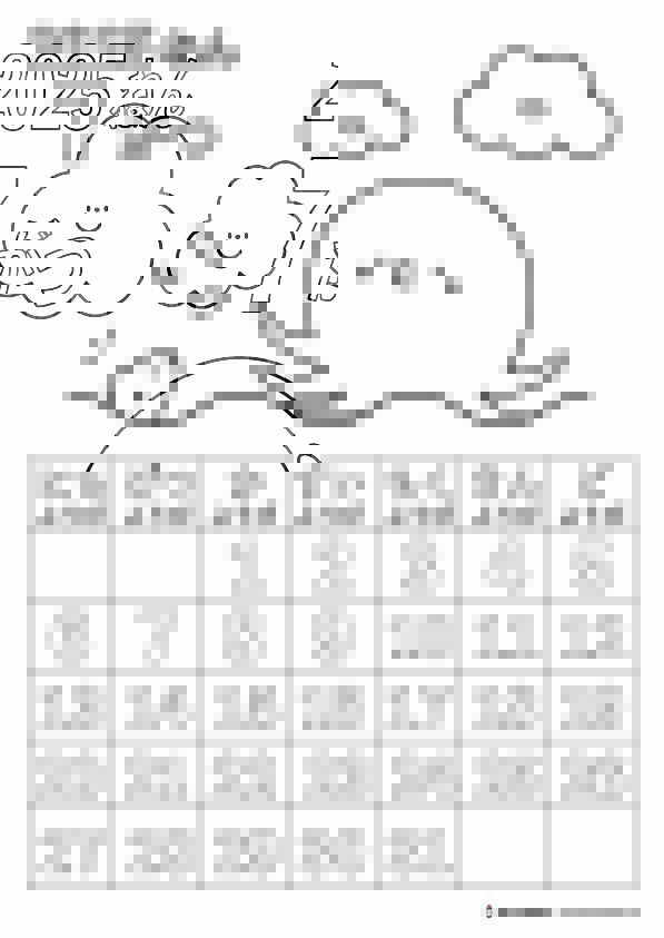 塗り絵カレンダー2025年7月 ひらがなバージョン