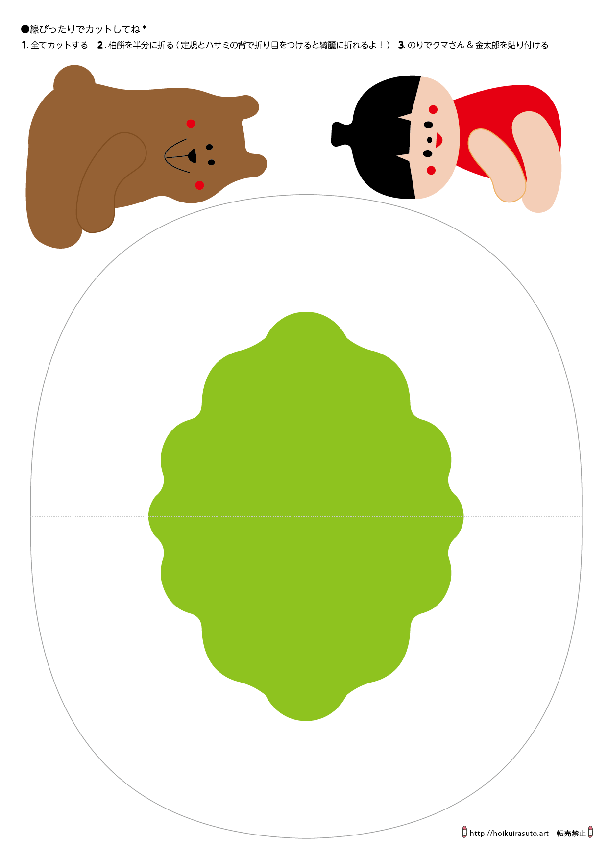 4.のりで、柏の葉っぱ・クマさん・金太郎のパーツをそれぞれ貼り付けていく