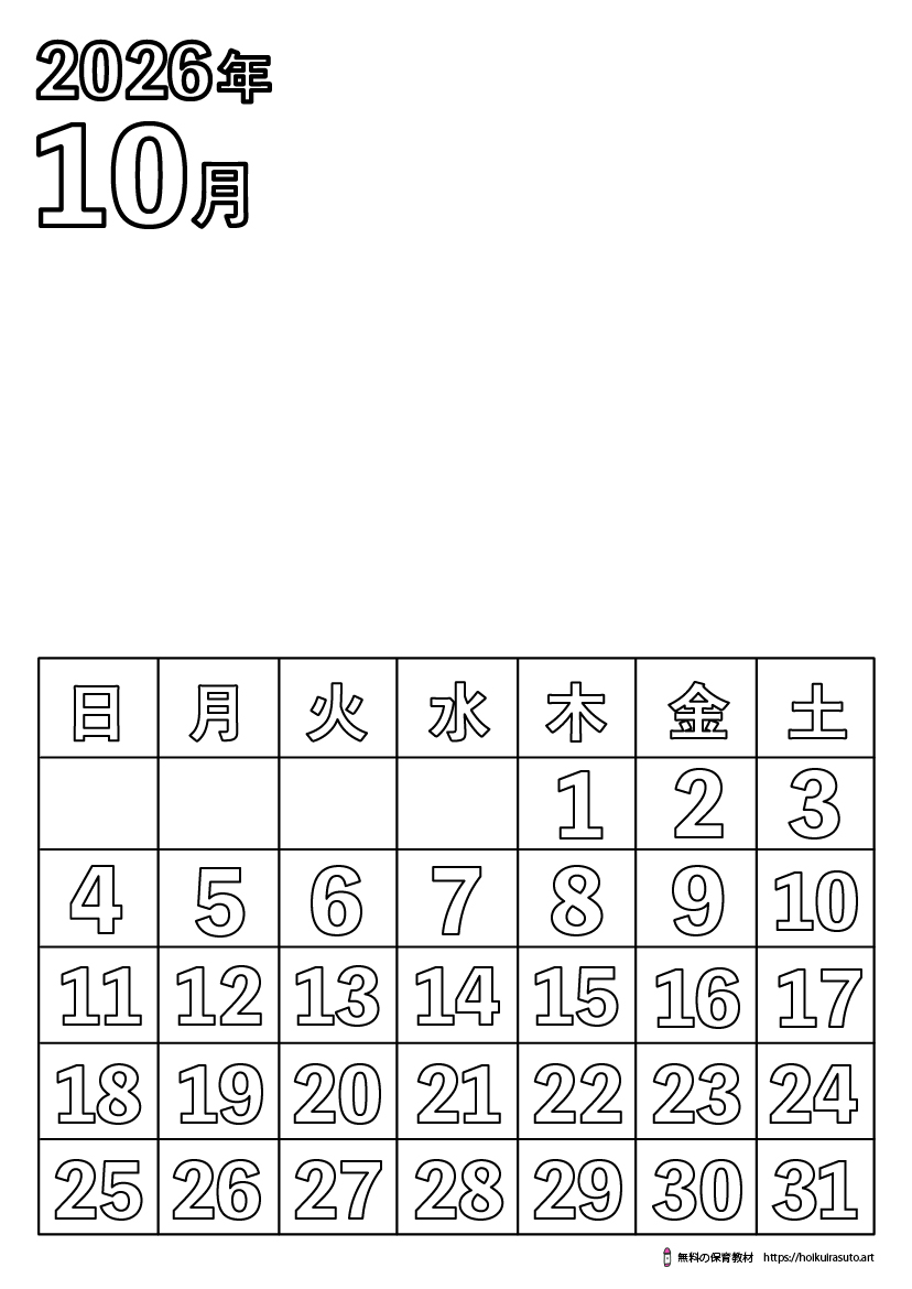 2025年10月7日 / 最終更新日時 : 2025年10月7日 kureyonchan 2026年10月の塗り絵カレンダー無地漢字 [featured_image] ダウンロード Download is available until [expire_date] バージョン ダウンロード 1035 ファイルサイズ 178 KB ファイル数 1 投稿日 2025年10月7日 最終更新日時 2025年10月7日 2026年10月の塗り絵カレンダー無地漢字