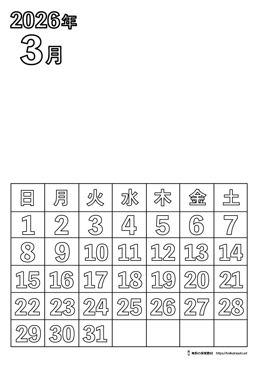 2025年10月7日 / 最終更新日時 : 2025年10月7日 kureyonchan 2026年3月の塗り絵カレンダー無地漢字 [featured_image] ダウンロード Download is available until [expire_date] バージョン ダウンロード 802 ファイルサイズ 178 KB ファイル数 1 投稿日 2025年10月7日 最終更新日時 2025年10月7日 2026年3月の塗り絵カレンダー無地漢字