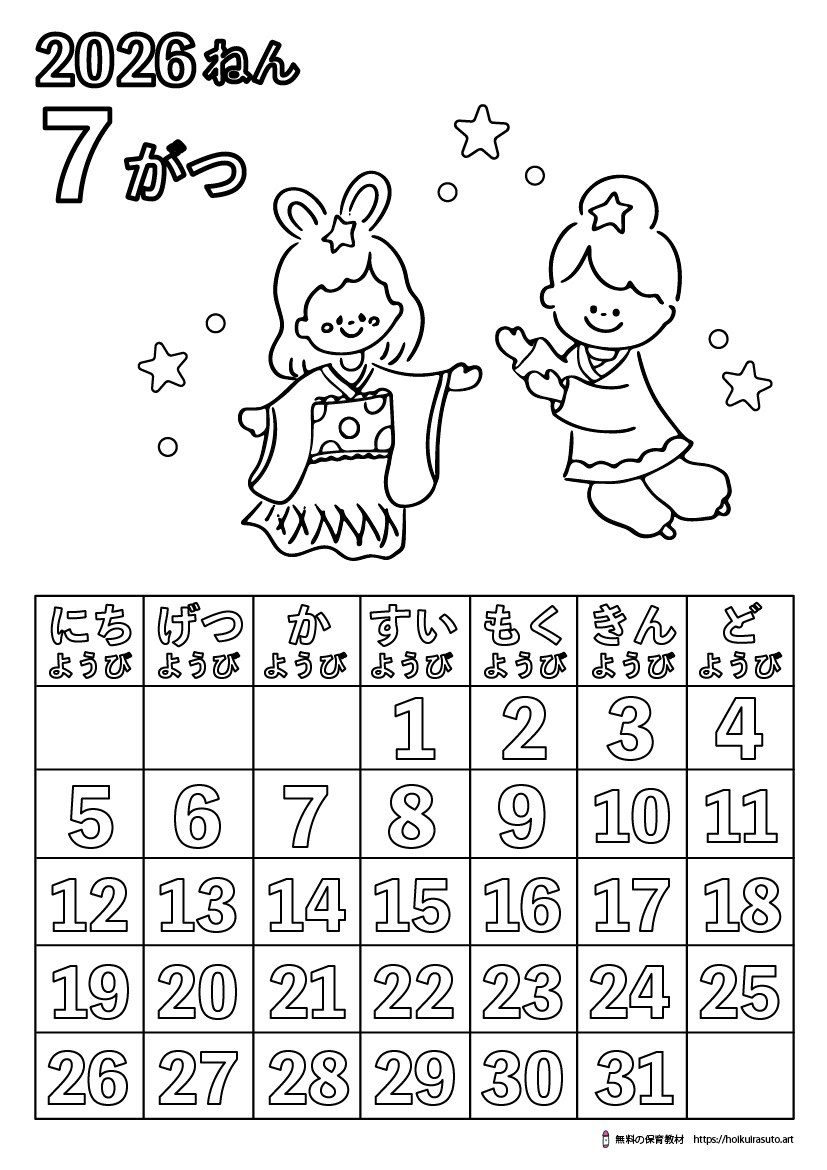 2025年10月7日 / 最終更新日時 : 2025年10月7日 kureyonchan 2026年7月の塗り絵カレンダ-七夕平仮名 [featured_image] ダウンロード Download is available until [expire_date] バージョン ダウンロード 319 ファイルサイズ 271 KB ファイル数 1 投稿日 2025年10月7日 最終更新日時 2025年10月7日 2026年7月の塗り絵カレンダ-七夕平仮名
